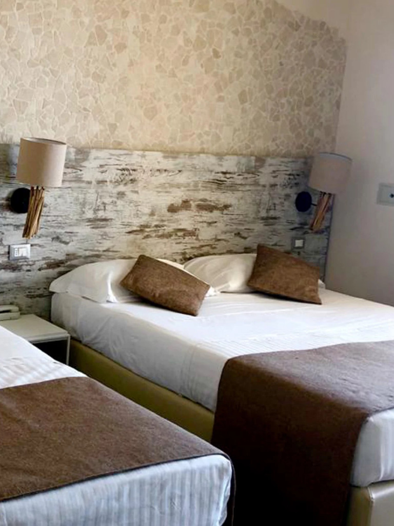 Pokoje Queen w Hotelu Life otulają Cię unikalnymi wnętrzami, łącząc ciepło drewna morskiego i miękkie kamienie rzeczne, meble z naturalnego drewna i parkiet, prysznice z kamienia oraz tapetę jungle dla najbardziej dzikich dusz. Komfort jest gwarantowany: masz jeszcze więcej przestrzeni i wygody dzięki dwóm łóżkom małżeńskim. W pokojach Queen każdego dnia doświadczasz niezapomnianych wrażeń od wschodu do zachodu słońca, z przepięknym widokiem na błękit morza.